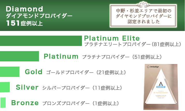 中野・杉並エリアで初めてのインビザライン・ダイヤモンドドクターに認定されました。
